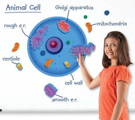 The Giant Magnetic Animal Cell makes your whiteboard come alive with science! Students can explore cell structures through hands-on investigation and gain an understanding of animal cells. This 19-piece set includes 4-piece animal cell, 14-dimensional organelles, and Activity Guide with background information about each organelle and reproducible diagram. Measures 18"